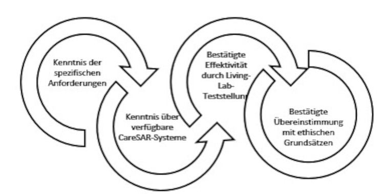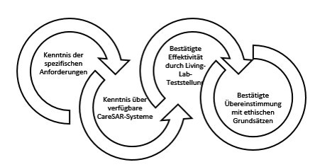 Forschungsziel ist die Entwicklung und der wirksame Einsatz eines „social assistive robots“, kurz: „CareSAR“, der den bestehenden und durch Faktenevidenz nachgewiesenen Engpass von Pflege- und Betreuungspersonal (vgl. z.B. Rappold/Juraszovich, 2019; Schneiders/Schönauer, 2020) entschärfen und gleichzeitig die normgerechte Pflegequalität in der stationären Langzeitpflege sichern soll. Dabei soll auf vorhandene technologische Entwicklungen und Basissysteme zurückgegriffen werden, d.h. es soll vorhandene Technologie für den konkreten Einsatz in einem Pflegeheim weiterentwickelt und effektiv angepasst werden. Besonders wichtig ist der effektive Nutzen aus der Sicht der Betreuungs- und Pflegekräfte sowie die Wahrung ethischer Grundsätze für alle beteiligten Personen. Die Wirksamkeit von Unterstützungsleistungen soll in einem Wohnbereich entwickelt und evaluiert werden.