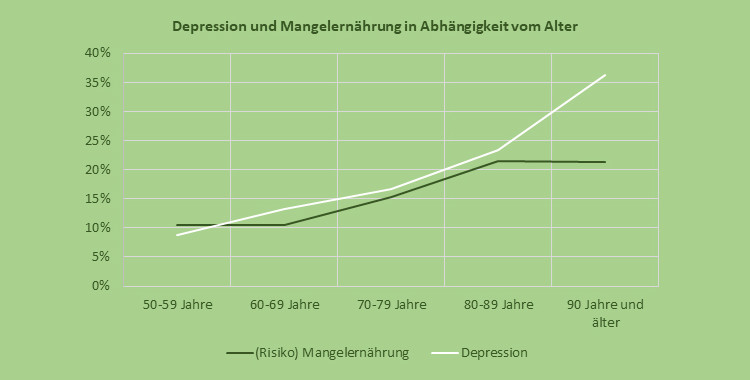 Die wichtigsten Ergebnisse zeigen, dass sowohl die Prävalenz von Mangelernährung als auch die von Depression mit zunehmendem Alter anstieg, wobei Frauen stärker betroffen waren als Männer. Frauen wiesen ein um 8,9 Prozent höheres Depressionsrisiko sowie ein um 7 Prozentpunkte höheres Risiko für eine Mangelernährung auf. Eine Gewichtsabnahme, eine verminderte Nahrungsaufnahme, eine schlechte Selbsteinschätzung des eigenen Gesundheitszustandes im Vergleich zu gleichaltrigen Personen, Appetitverlust sowie Kraftlosigkeit waren klar mit einer Mangelernährung als auch einer Depression assoziiert. Auch eine Verbindung zwischen einer Depression und dem Ernährungszustand war ersichtlich: das Mangelernährungsrisiko von depressiven Personen war um über zehnfach höher als das von Personen ohne mentale Einbußen. Weiters wirkte sich eine eingeschränkte Mobilität deutlich negativ auf den mentalen Gesundheitszustand aus.