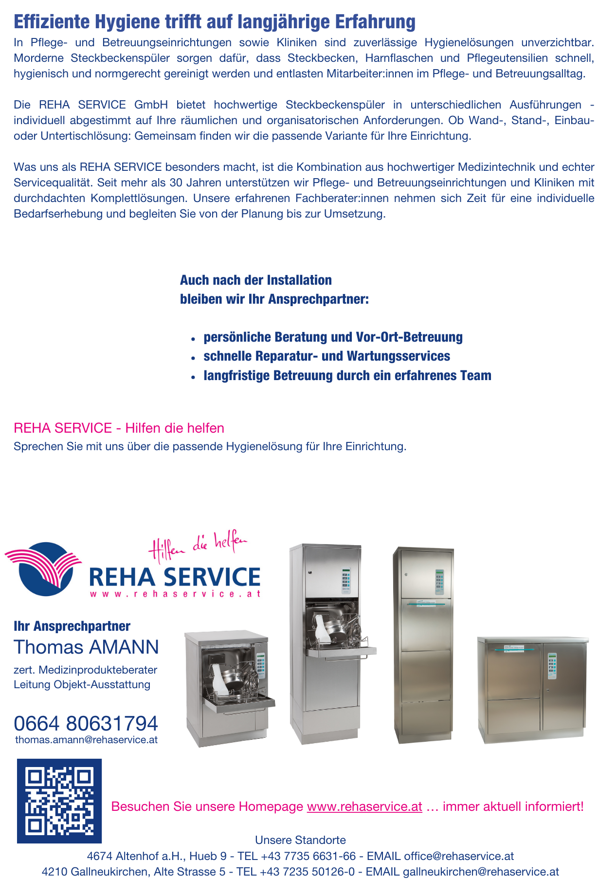Die Steckbeckenspüler der REHA SERVICE GmbH sorgen für effiziente Desinfektion im Pflege- und Betreuungsalltag.